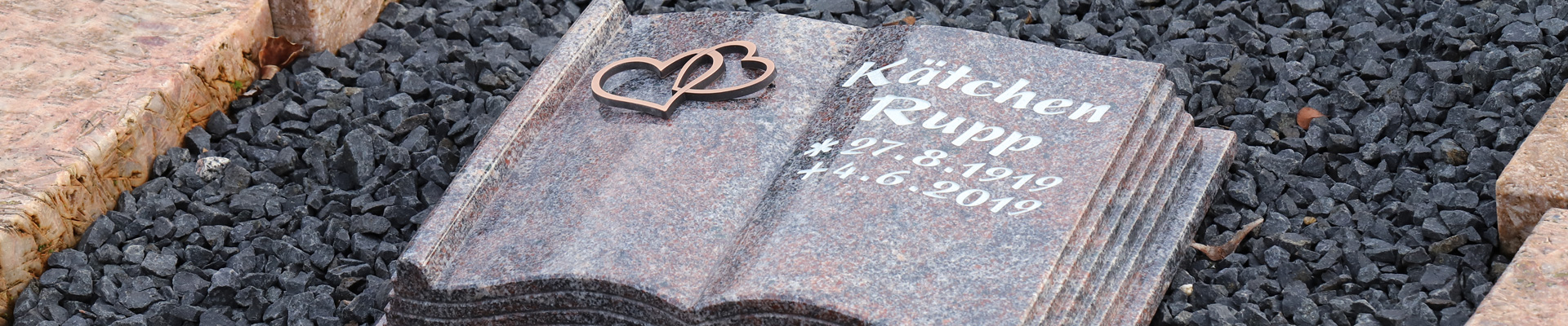 Grabbücher werden oft als Massenware produziert und dann billig mit Lasergravur im Internet verkauft und es erinnert hier nur noch die persönliche Inschrift an die verstorbene Person. Jedoch sind die Kosten handwerklich gefertigte Inschriften von Bildhauern nicht selten nur unwesentlich höher als Urnengrabsteine aus industrieller Großproduktion. Unsere Steinmetzmeister fertigen romantische oder rustikale Grabbücher nach Ihren Wünschen und denen des Verstorbenen individuell. Was das Grabbuch dann genau kostet, lässt sich nicht pauschal sagen, da dies von mehreren Faktoren abhängt. Je aufwändiger des Grabbuch bearbeitet werden muss, desto höher fallen auch die Kosten aus. Ein Grabbuch-Preisvergleich lohnt sich in jedem Fall. In unserem Onlineshop bieten wir Ihnen ein breites Sortiment anspruchsvoll gestalteter und hochwertiger Grabbücher als Wiesengrabsteine zu günstigen Preisen an. Da wir in Bezug auf die Verkaufsfläche und das Personal Kosten einsparen können, geben wir diesen Preisvorteil gern an unsere Kunden weiter. Neben unseren vielfältigen Grabbüchern können Sie ebenso hochwertige Grabsteine in Buchform für Ihr Familiengrab sowie Kindergrabsteine und Tiergrabsteine und exklusiven Grabschmuck bei uns zu günstigen Preisen online bestellen und kaufen.